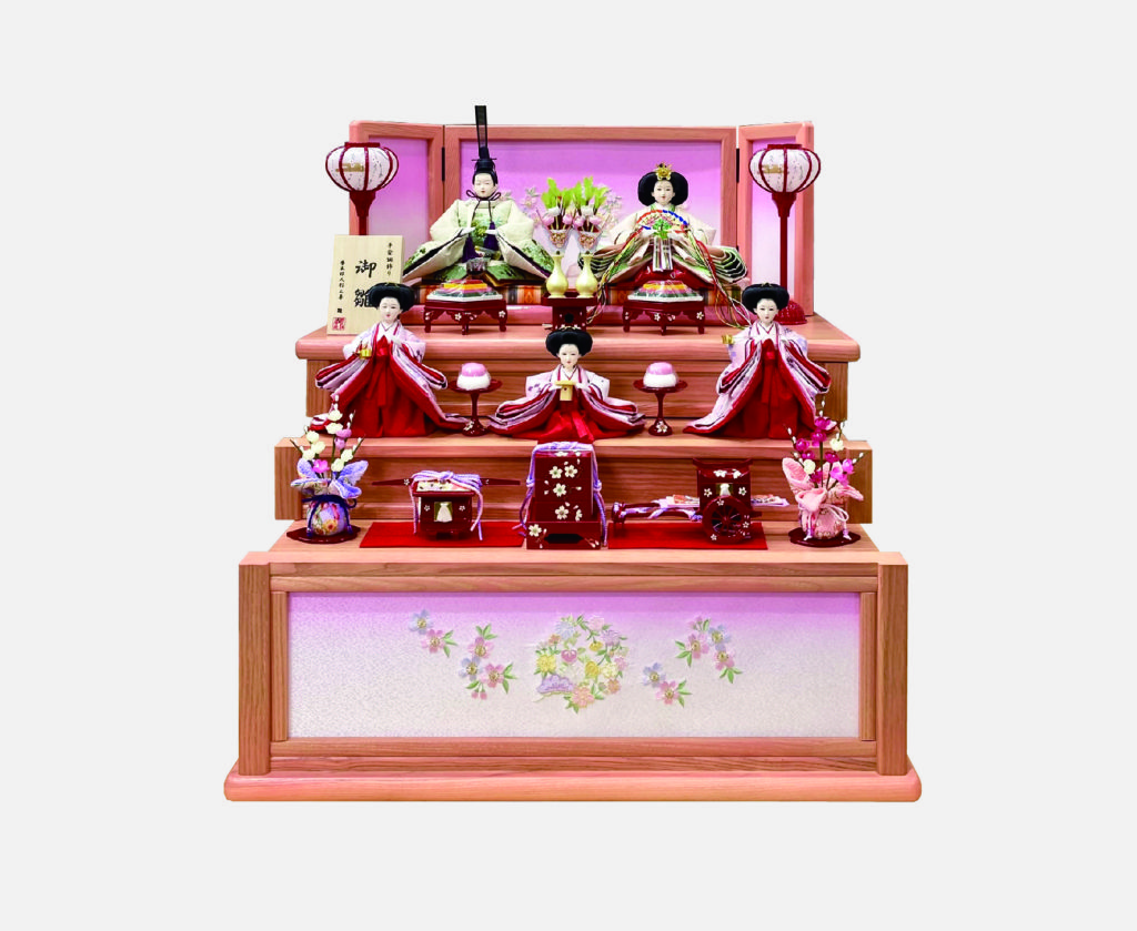 ピンク引き出し式収納三段飾り